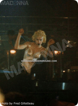 D-Day finally arrived (July 3, 1990) I left my parents’ house at six o’clock in the morning to see our star on stage for the second time (after the Who’s That Girl Tour in Sceaux in 1987). Arrived in front of Bercy around 8 am I find myself in the very first on the spot, only 5 or 6 other people have already arrived and we spend a long, very long time waiting, but very exciting at the same time! (with great weather!) The day goes by and the heat is causing some problems for some of us… Finally around 6pm (and several thousands of fans behind us!) the doors of Bercy open and we rush toward this incredible venue, and in spite of a big curtain it is clear that the stage holds some surprises for us…already it is clear that this concert will be very ambitious…