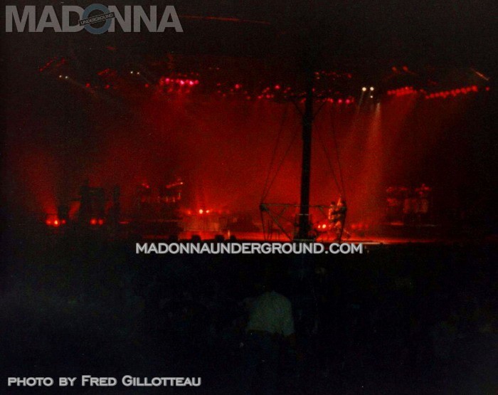 I’m lucky to be in front (and to have been able to bring a small camera…) I enjoy the show I see Madonna twirling like never before, the excitement is at its peak, I suffocate and am forced to finish the show at the back of the arena so I decided to go up in the bleachers to have a better view (at that time no place was numbered, we could go where we wanted, depending on space available) which gives a global vision not entirely unpleasant… at the end of the show and after a short trip to the merchandise booth (I purchased an amazing t-shirt and program of course!) I finally get my friends and we promise to see each other again the next day, for the second show…
