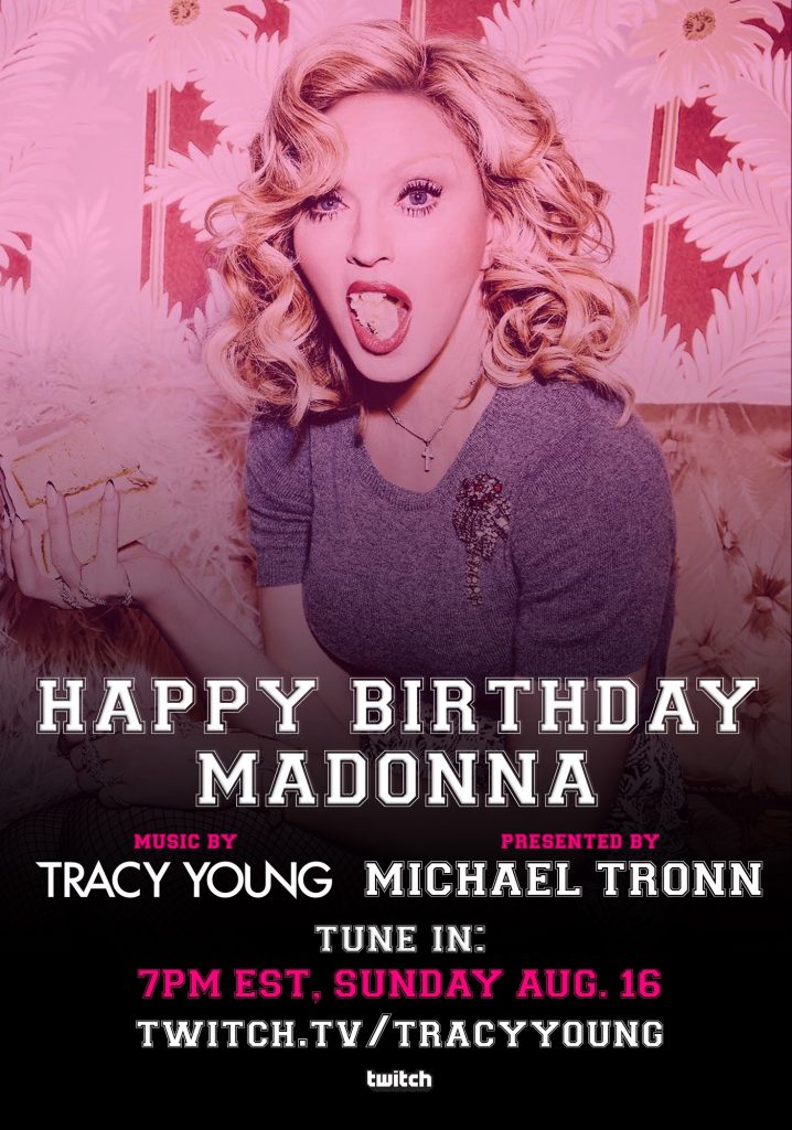 Celebrate Madonna’s Birthday Sunday 7pm on twitch.tv/tracyyoung