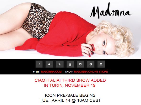 Italy’s love for Madonna continues to grow — a third Rebel Heart show has been added for November 19 at Pala Alpitour.