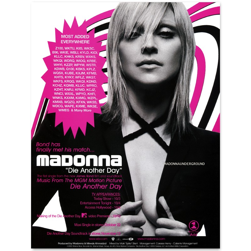 Take a look at a variety of Die Another Day adverts promoting Madonna’s theme song single HERE.