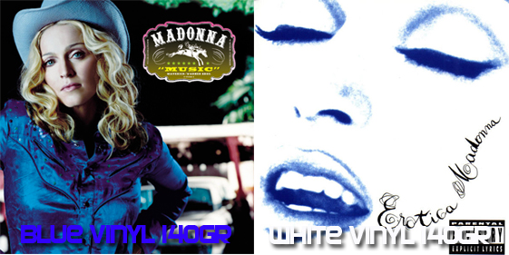 We have just had confirmation that both the colored vinyl re-issues of Madonna’s Erotica (white vinyl 140gr) and Music (blue vinyl 140gr) will also be released in Holland!