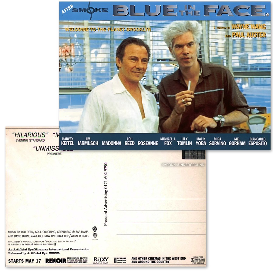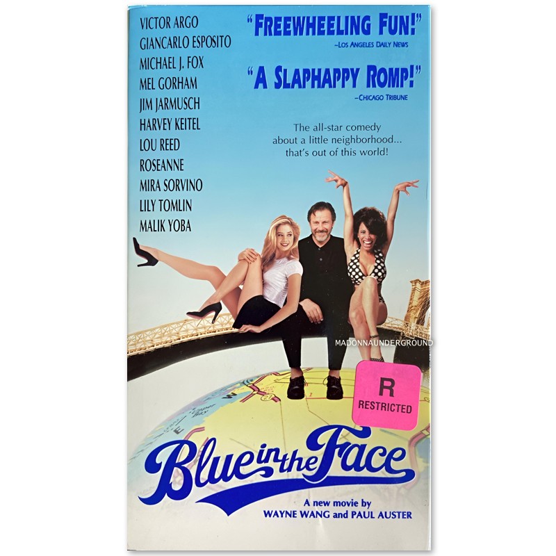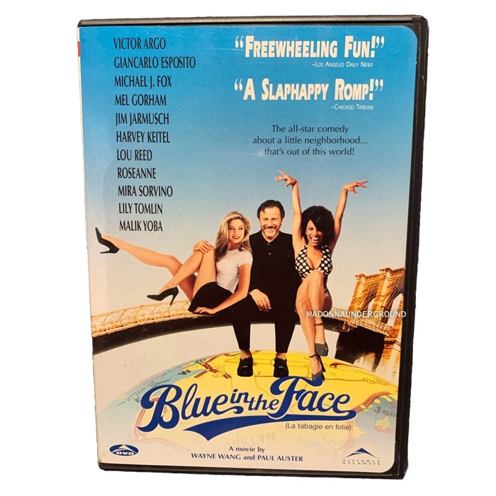 Blue in the Face (1995), Wayne Wang and Paul Auster’s free-wheeling companion to Smoke, unfolds in a Brooklyn cigar shop where colorful locals wander through. Among the cameos, Madonna appears as a brash singing telegram girl, injecting a flash of absurd comedy.