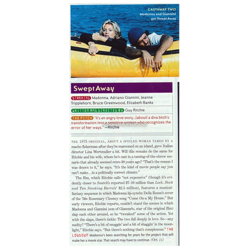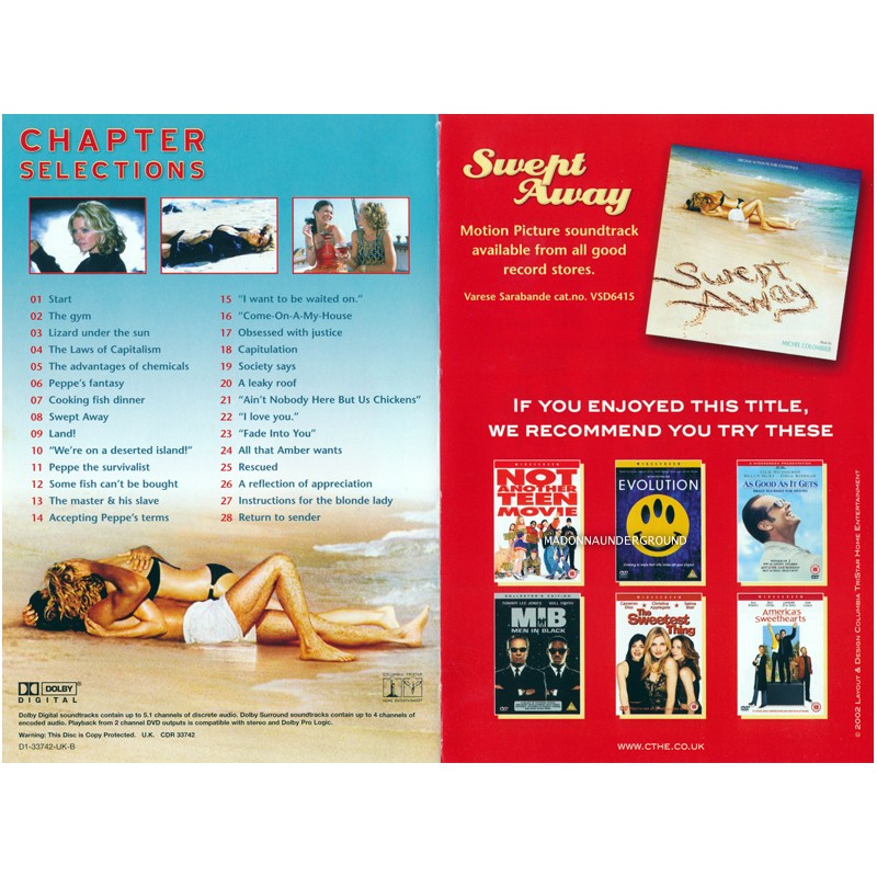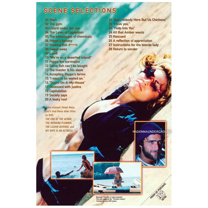 A rich, spoiled socialite (Madonna) and a handsome Italian fisherman (Giannini) find themselves stranded on a deserted island where matters of material wealth and class disparity are meaningless. And in their struggle to survive and coexist in their paradise found, they soon discover that their dramatic differences are suddenly the source of a fierce, passionate and sometimes hilarious animal attraction.