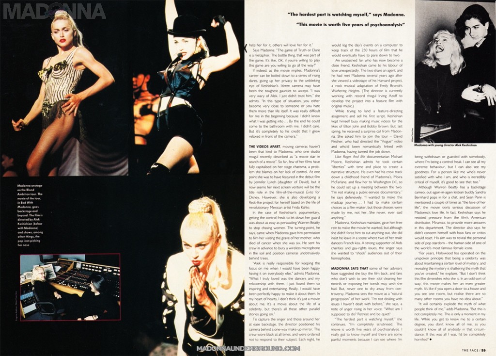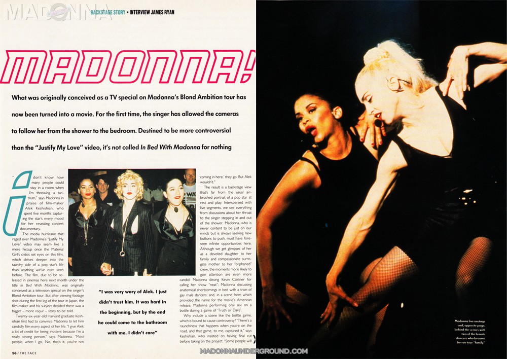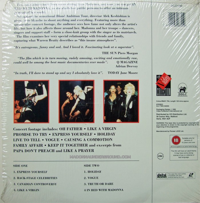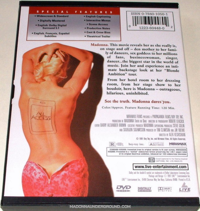 Join her experience and intimate backstage look at her “Blond Ambition” tour. From her hotelroom to her dressingroom, from her stage show to her boudoir, here is Madonna outrageous, hilarious, uninhibited.