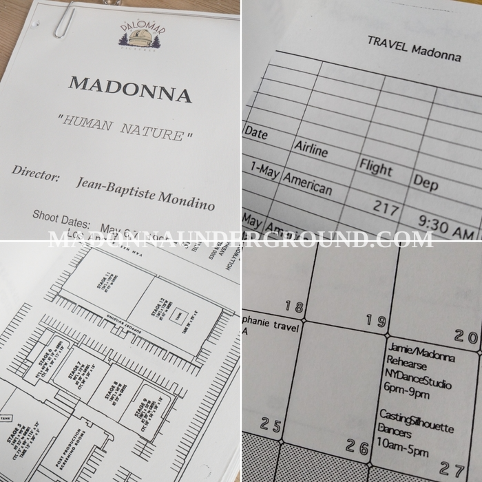 - all contact information of personnel, crew, styling, make up, production, dancers and Madonna’s people