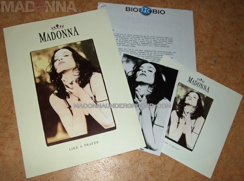 In this discography we have included 35 different pressings (vinyl, CD, cassette, VHS, presskit). Included is also the extremely rare Dutch withdrawn Pepsi CD promo case by Vrumona (only on MadonnaUnderground!) and a very rarely seen Dutch promotional presskit for the single (pictured). We will include more on the Vrumona Pepsi CD single asap!