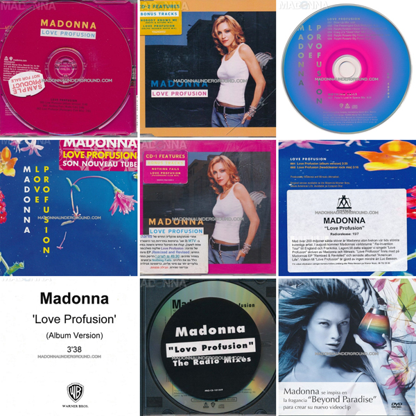 Love Profusion was also used in an Estee Lauder commercial and therefore free samples of the new perfume were given away with the CD singles. Madonna recorded a music video for the track inspired by the Estee Lauder commercial. Unfortunately Madonna has never performed the track live during any of her world tours, even though rumoured to have been part of the original Re-Invention tour setlist.