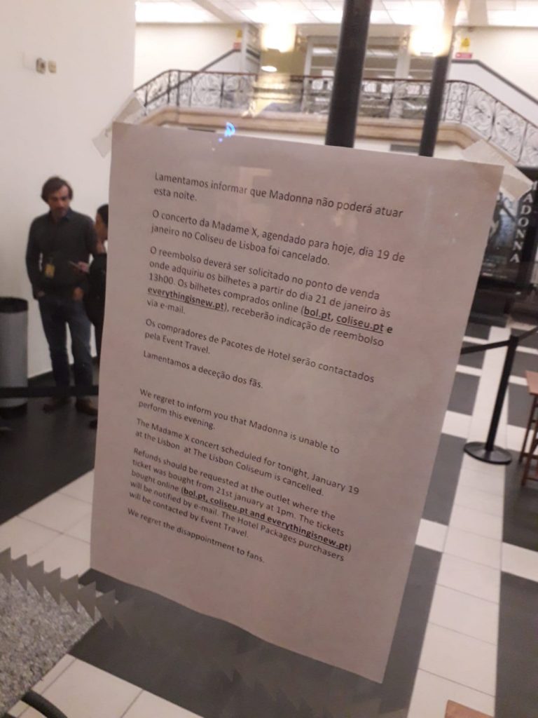 Tonight’s scene and cancellation note at the Coliseu dos Recreios