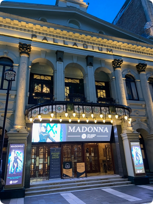 I got to my seat, which was at the left wing. I was lucky though, because three seats next to me remained empty, so I could ‘upgrade’ three seats which made me end up at the aisle. Yay! It was now 8:30, the supposed starting time of the show. After starting only 10 minutes late the night before, this night she kept us waiting until almost 9:30. Still a very okay time for a Madonna show. This late start came with a surprise though… She started with Vogue, which meant she skipped the whole first section: God Control, Dark Ballet, Human Nature and Express Yourself. She also skipped Crave. Quite disappointing, because the first two are amongst my favorites on the album. I don’t know if she skipped these because of her injuries or because of the supposed curfew for London theatre shows.