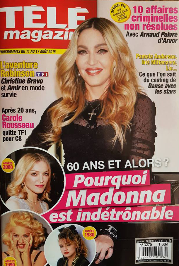 Madonna covers the August 17 edition of French TELE Magazine, of course dedicated to her 60th birthday.