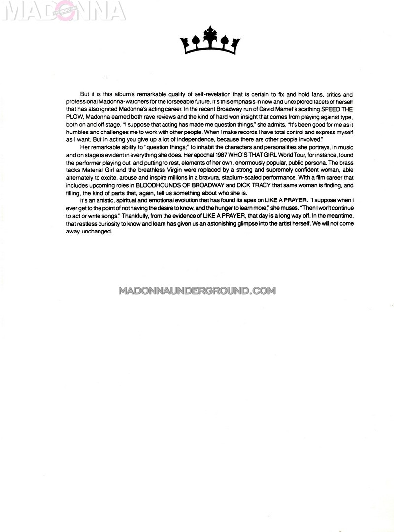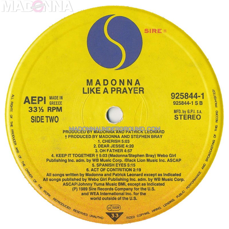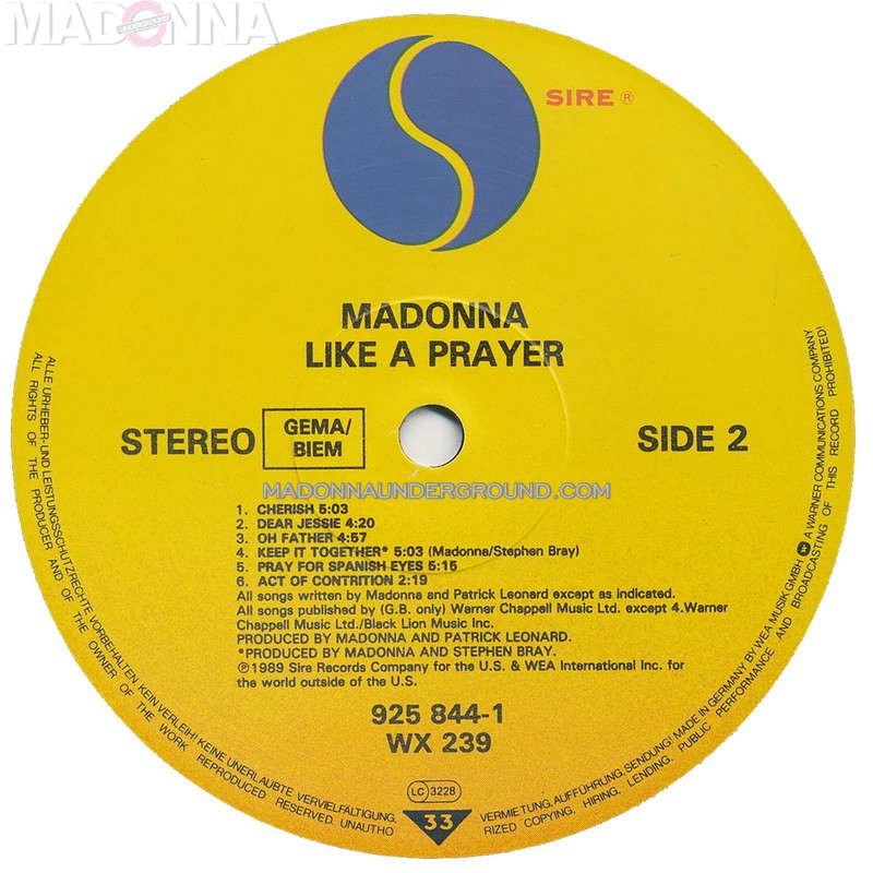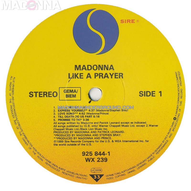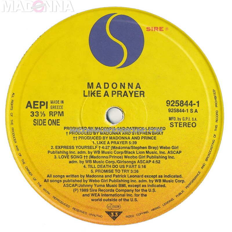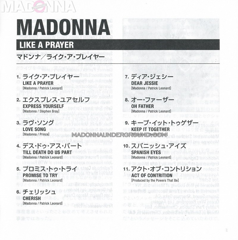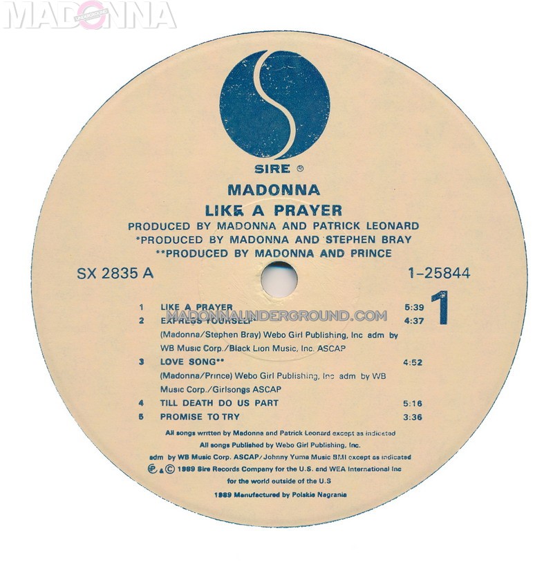 Producers: Madonna / Patrick Leonard / Stephen Bray / Prince