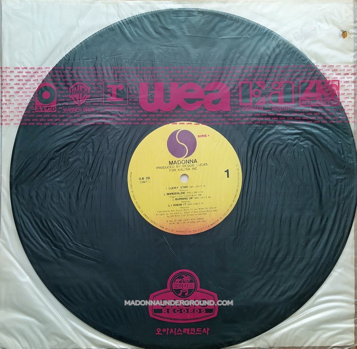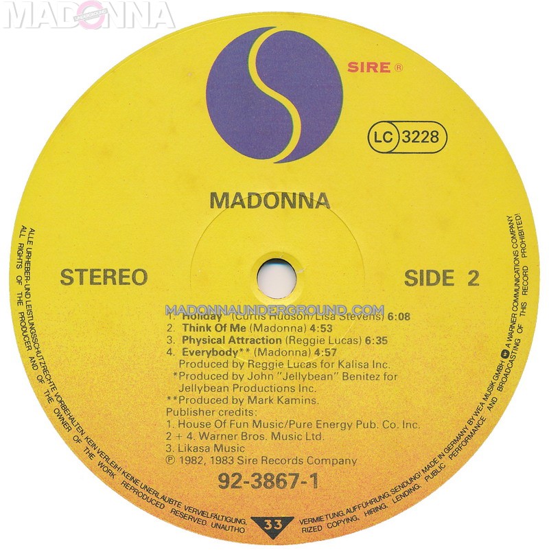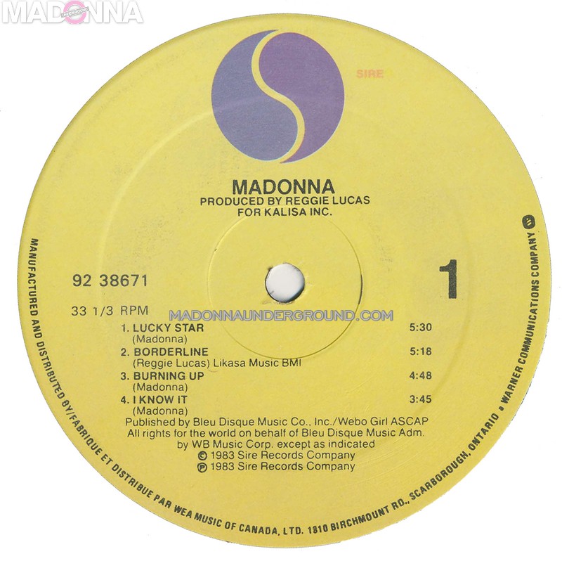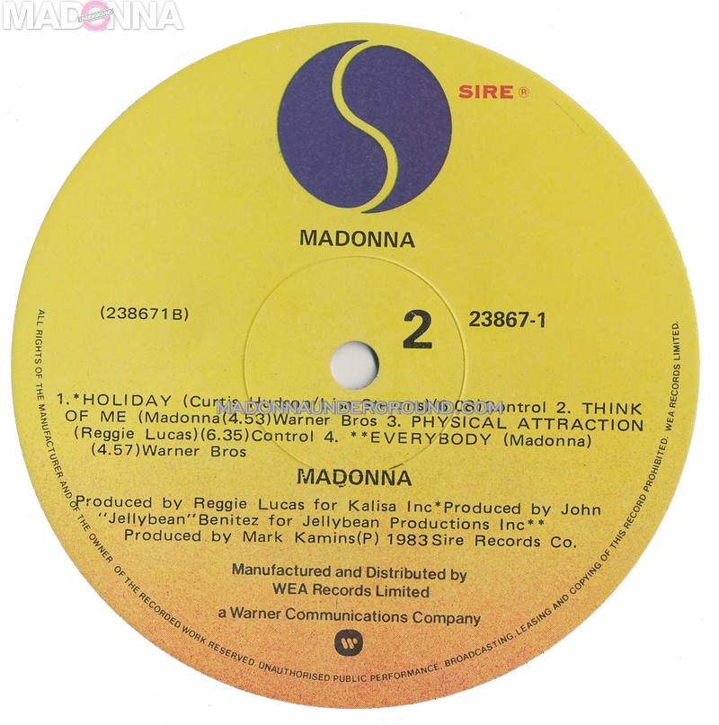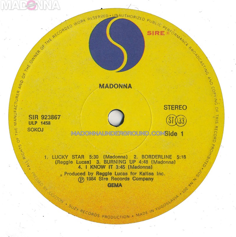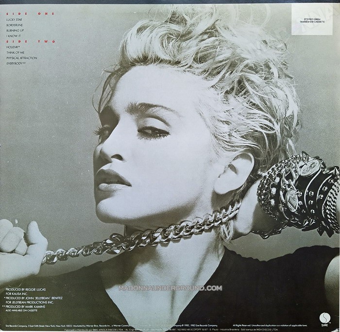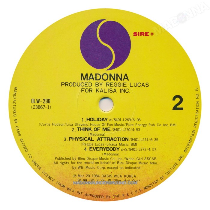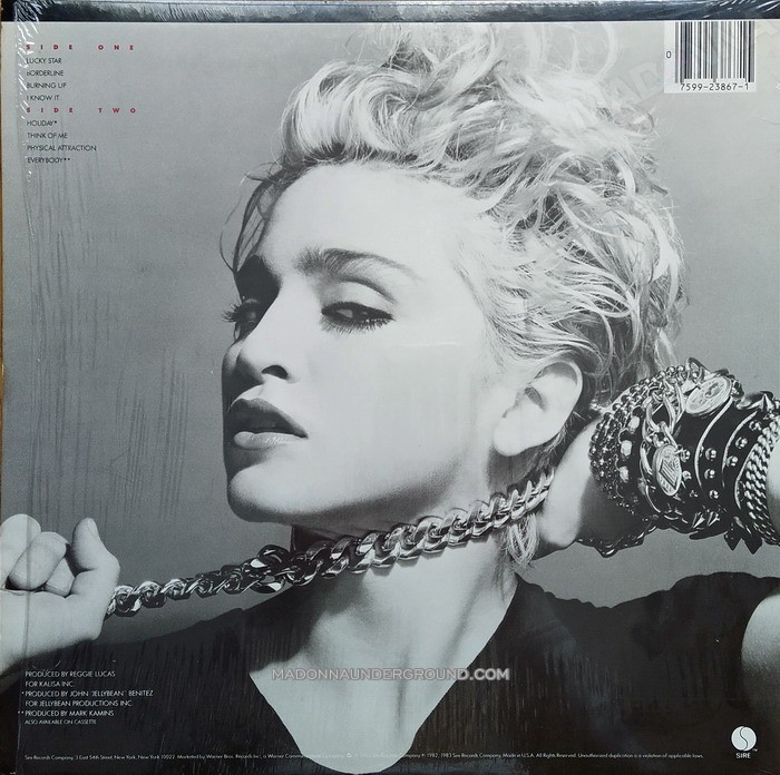 - Gold promo stamped + white ‘Madonna’ sticker on front