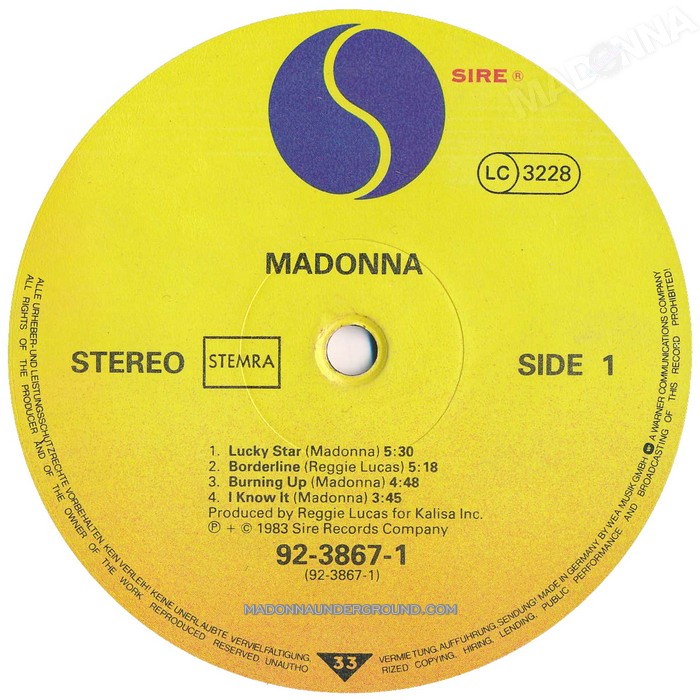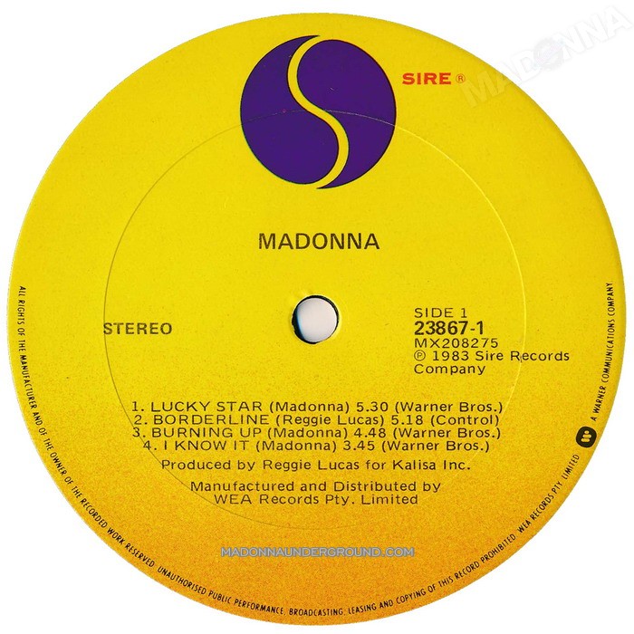 - White label test pressing with information sheet, detailing releasedate (July 27 1983), retail price and original tracklisting
