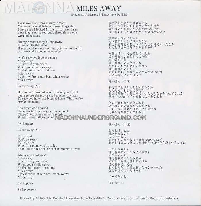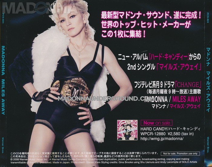 Na de hits “4 Minutes” en “Give It 2 Me” is ‘Miles Away’ alweer de derde single van het succesvolle album ‘Hard Candy’ van Madonna.