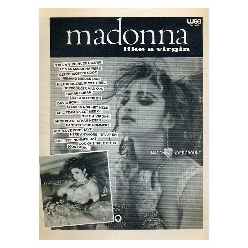 Madonna’s Like a Virgin (1984), produced mainly by Nile Rodgers, became her breakthrough, topping the Billboard 200 and selling over 21 million copies worldwide. Its title track, written by Billy Steinberg and Tom Kelly, was her first U.S. No. 1 single. The album earned RIAA diamond certification in the U.S., placing it among the best-selling albums ever. Madonna also created a cultural stir with her provocative performance of “Like a Virgin” at the inaugural MTV Video Music Awards, cementing her image as pop’s most daring new star.