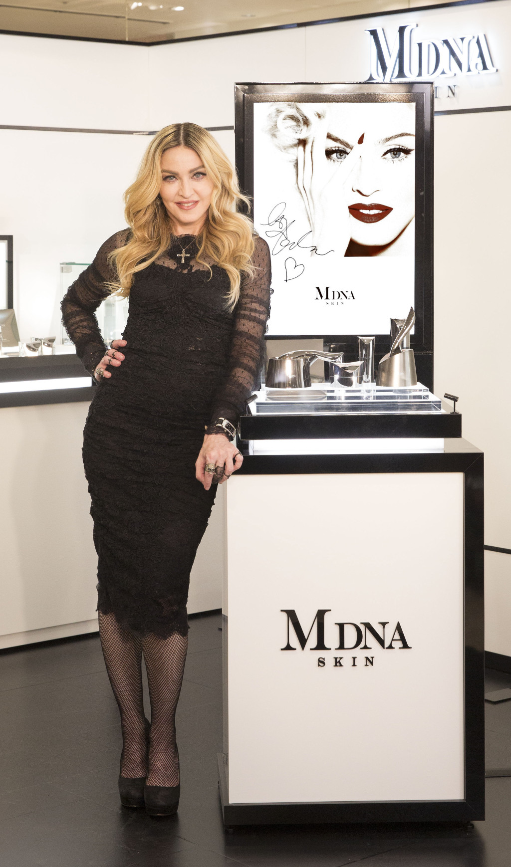 Madonna is currently touring Asia but she has more than just concerts on her itinerary. After playing two shows in Tokyo as a part of her Rebel Heart tour, the Material Girl put in an after-hours appearance at Tokyo’s Ginza Mitsukoshi store to promote her skin-care line, MDNA Skin.