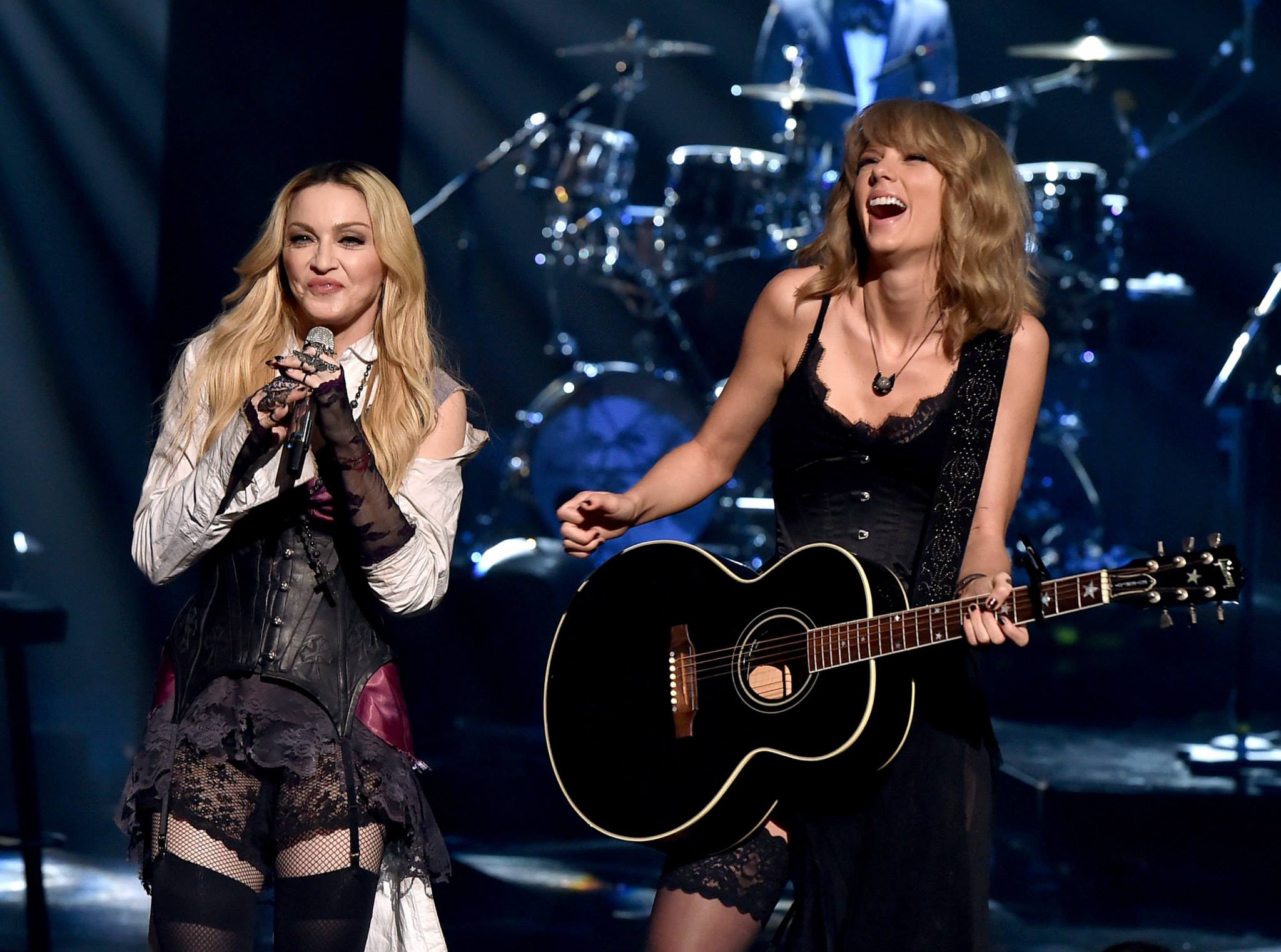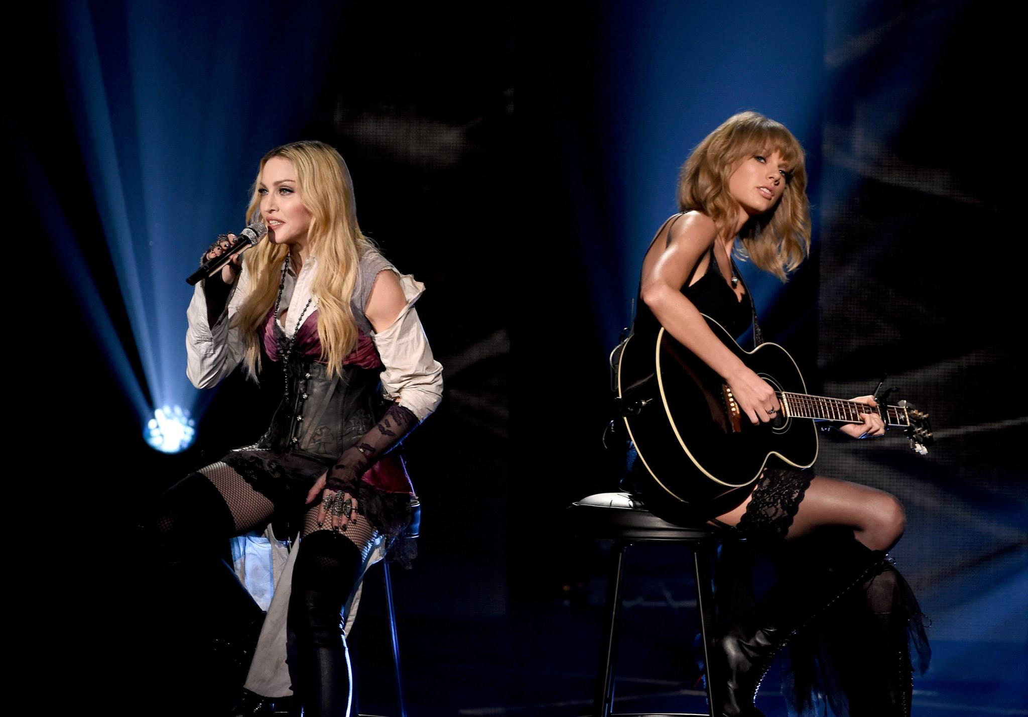 LOS ANGELES, CA – MARCH 29: Singers Madonna (L) and Taylor Swift perform ‘Ghost Town’ onstage during the 2015 iHeartRadio Music Awards which broadcasted live on NBC from The Shrine Auditorium on March 29, 2015 in Los Angeles, California. (Photo by Kevin Winter/Getty Images for iHeartMedia)