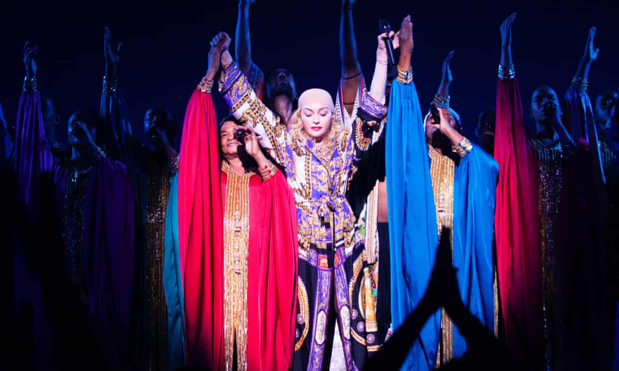 Acurious mix of anticipation and trepidation hangs in the air of the London Palladium as the audience dutifully stash their mobile phones in locked pouches and await the arrival of the biggest-selling female recording artist of all time. The Madame X tour arrives in Britain trailing a different kind of controversy to the one you might expect from Madonna. There have been cancelled shows, talks of health issues, hotly contested reports of slow ticket sales, and stories of audiences booing and even attempting to sue her for turning up on stage hours late. And there are the grumbles about a setlist that’s bullishly heavy on tracks from her most recent album and takes what you would politely describe as an intriguing approach to her back catalogue. She sings the bare minimum of big hits – Vogue, Like a Prayer, Human Nature – with Express Yourself and La Isla Bonita reduced to interstitial roles (the former performed as a sweet, but brief a cappella duet with her daughter Mercy), and American Life performed in full.