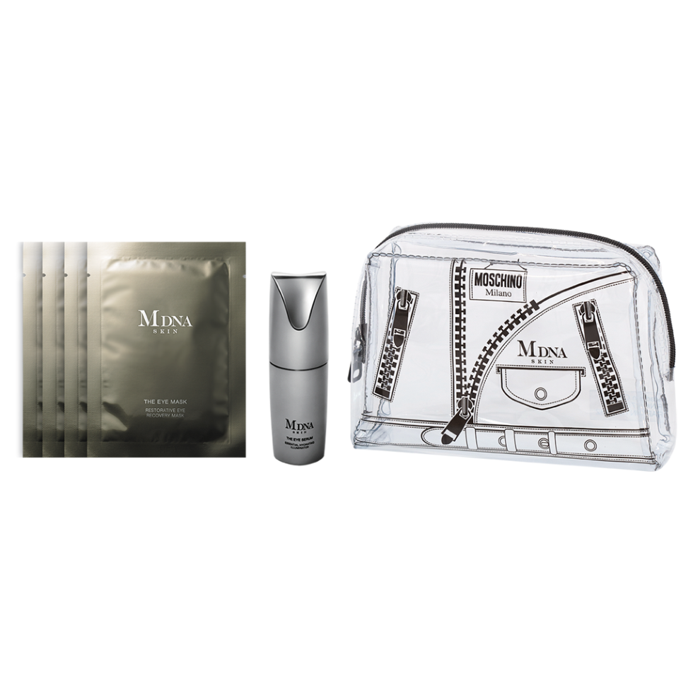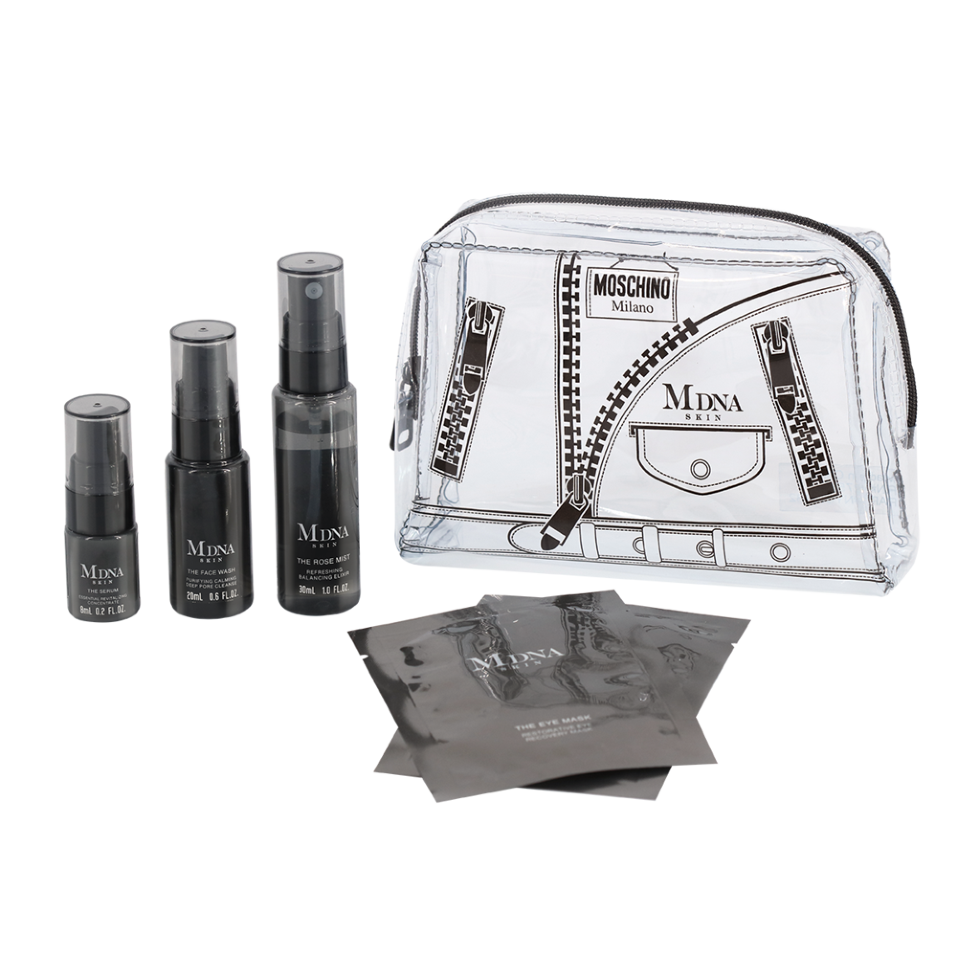 And now the brand has partnered with luxury Italian label Moschino to launch three super expensive skincare sets. Each set is built around the MDNA’s existing range of products and comes repackaged in a transparent Moschino bag.