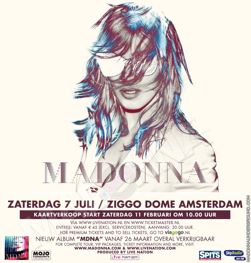 It was the start of a massive advert campaign for Madonna’s shows at the Ziggo Dome. Check out the full original Dutch press release below the tour image.