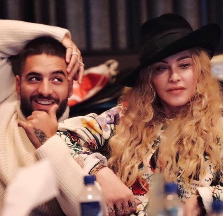 The 25-year-old “Felices Los 4” crooner took to Instagram on Saturday to share a photo of himself with the only and only Queen of Pop. In the snap, Maluma wears a cream sweater as he sits next to the “Like a Virgin” singer, who’s all dolled up in a floral printed shirt and wearing a black hat. The two appear to be in a recording studio.