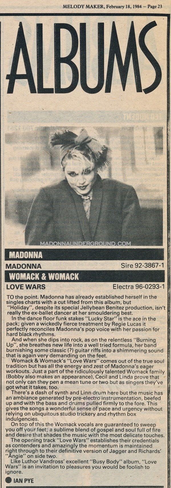 Melody Maker reviewed Madonna’s debut album in their February 18, 1984 edition. Check it out below, it has been added to the press section of The First Album.