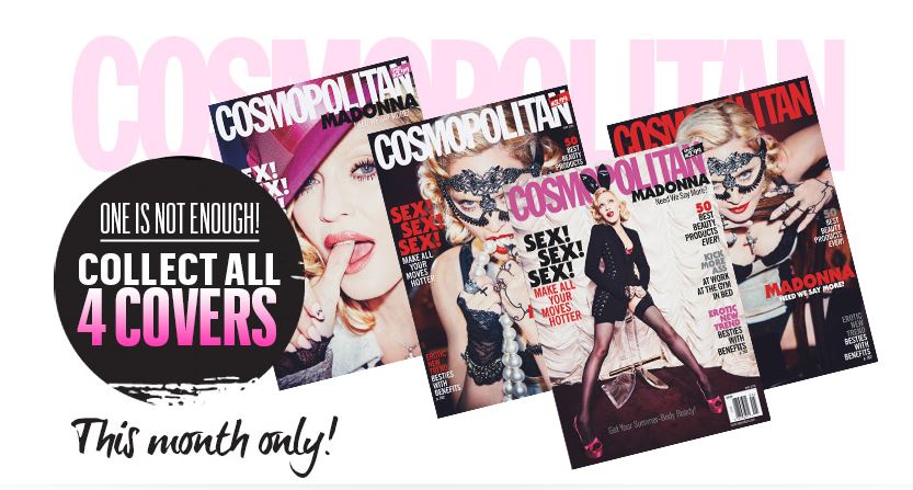Fill in the form HERE to get 4 issues of Cosmopolitan (May issue) with 4 exclusive covers of Madonna for just $19.99!