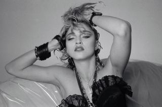 The Osaka native was allotted 45 minutes with Madonna in a spare studio space, where he set up a pink couch covered in plastic and a flash unit—that was all in terms of props and equipment. There were no stylists, nor a glam team; Madonna came to the shoot wearing her own clothing (a bustier, Takara Kronoform robot watch, Maripol’s layered rubber and crucifix jewelry). As Wakasugi recalled, her energy and vibrant spirit did more than enough to fill the room.