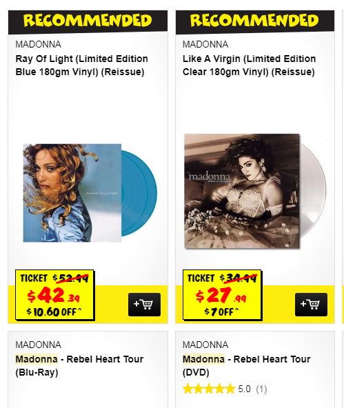 You can just click ont the link of each tittle…. Like A Virgin and Ray Of Light