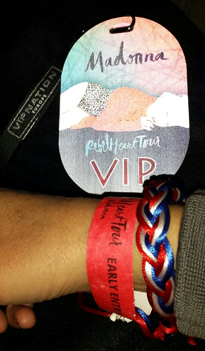 Next stage in the queue: everyone has been given a red wristband and laminate (no changes from other locations) and the VIP bag and book. Wardrobe opens 16.30 and doors at 18.00 (subject to change).
