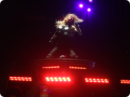 I wasn’t fond of the new version of Dress You Up, didn’t recognize anything of the original stellar track. She could’ve sung Borderline and I wouldn’t have heard the difference. She’s Not Me and Music were exactly the same. The whole gypsy section as well. Unfortunately M still wore that terrible wig in 4 Minutes and the Transformers outfit, new pants and shoes which were great however! During Like a Prayer I was just taking pictures randomly, not even seeing what I was doing, when suddenly I looked at the result of what I just shot……….WOW! Absolutely the most beautiful picture I have ever taken of Madonna, absolutely perfect. After Like a Prayer, lyrics from Michael’s Man In The Mirror were shown on screen ‘if you wanna make the world a better place, take a look at yourself and make a change’, gorgeous. Now we were presented to a new version of Frozen, it started out spectacular but quickly dropped in energy, then in the middle of the song the beat came back and I actually enjoyed it. Ray of Light is now probably one of my least favourite songs and Give it 2 Me was fun, loved the glittered glove Madonna wore in honor of Michael. After the show ‘Don’t Stop ‘Till You Get Enough’ was played, I absolutely loved all the Michael references in the show.