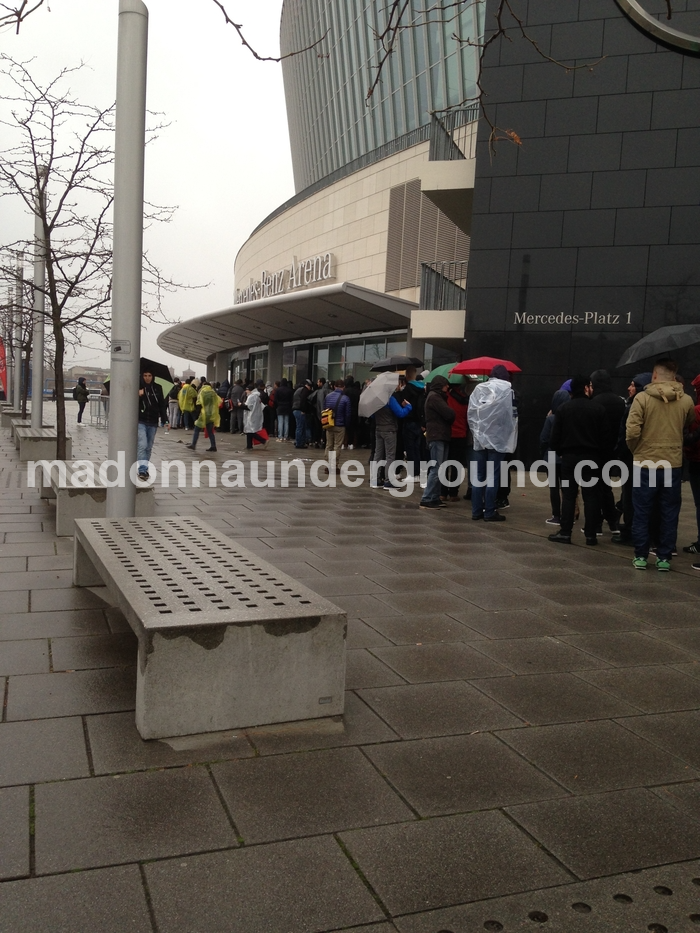 The queue at the Early Entry box office window in Berlin was a long rainy and windy one. Unfortunately the wait took up over 90 minutes in order to get your Early Entry wristband, VIP pass and specially created VIP book. The VIP book contains an overview of all of Madonna’s world tours with stunning photographs as well as replica’s of tickets and guitar picks.