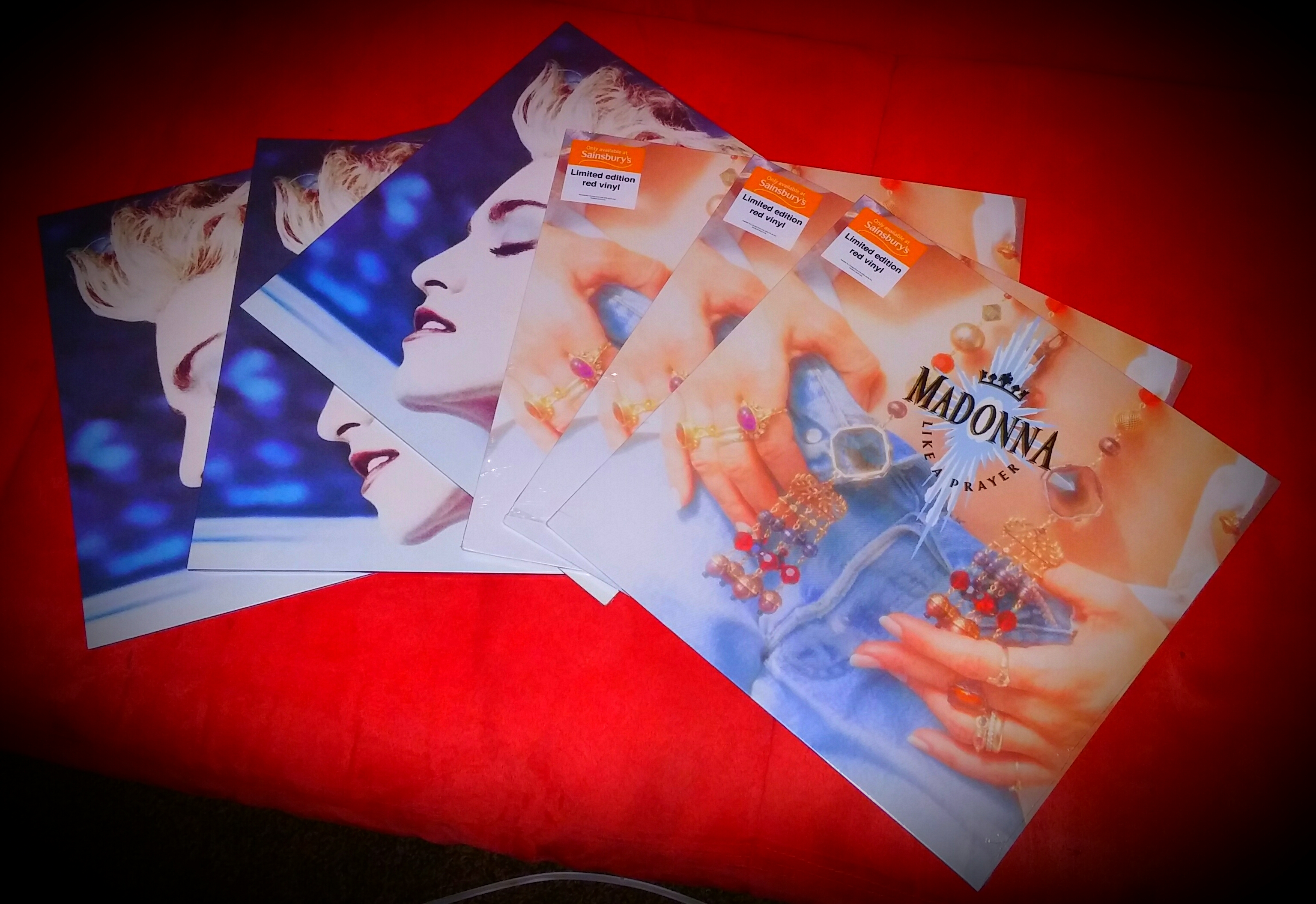 The “True Blue” (Blue vinyl + poster) & “Like A Prayer” (Red vinyl) released last year by Sainsbury will be re-edited on special FNAC (French) edition on feburary 24th 2017!
