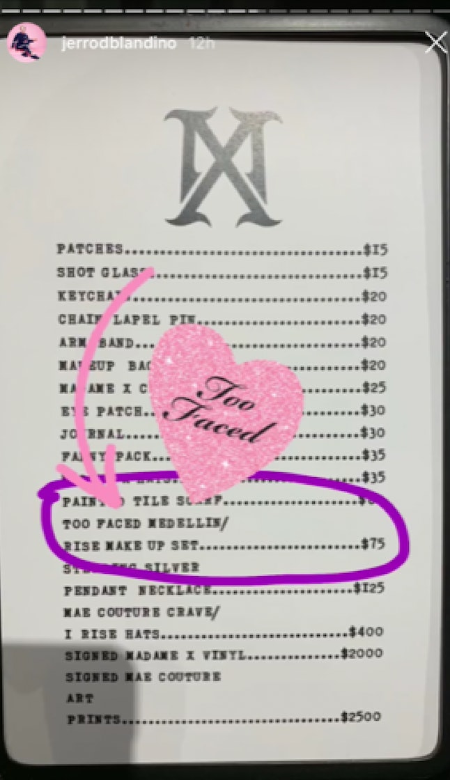 Blandino also shared his signature “sneaky peek” of the products in a series of Instagram stories that he filmed while perusing the pop-up. He posted a picture of the price listing from the mobile store, which shows that the makeup collection costs $75. Overall, these products just might inspire fans to hurry up and nab tickets to the tour.